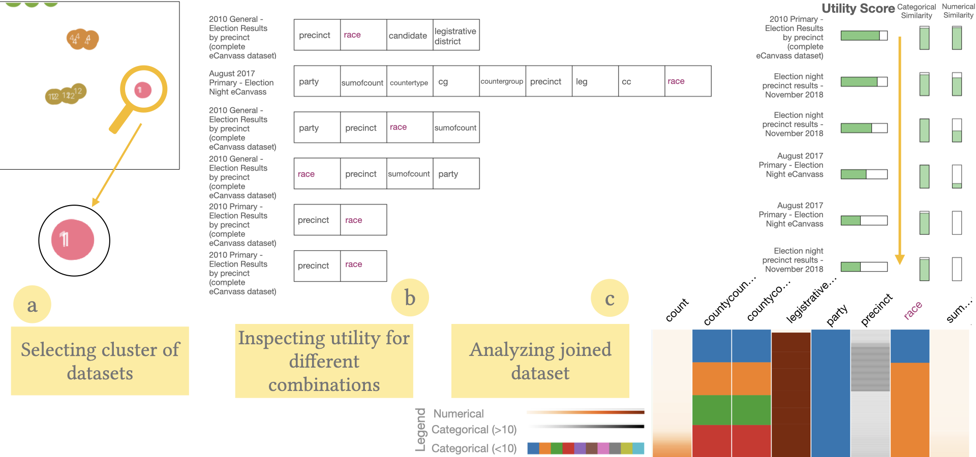The widespread adoption of open datasets across various domains has emphasized the significance of joining and computing their utility. However, the interplay between computation and human interaction is vital for informed decision-making. To address this issue, we first propose a utility metric to calibrate the usefulness of open datasets when joined with other such datasets. Further, we distill this utility metric through a visual analytic framework called VALUE, which empowers the researchers to identify joinable datasets, prioritize them based on their utility, and inspect the joined dataset. This transparent evaluation of the utility of the joined datasets is implemented through a human-in-the-loop approach where the researchers can adapt and refine the selection criteria according to their mental model of utility. Finally, we demonstrate the effectiveness of our approach through a usage scenario using real-world open datasets.